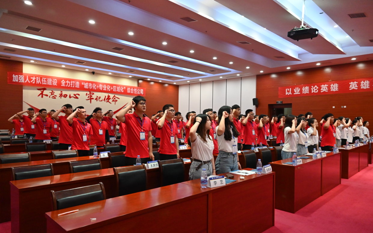 在铿锵有力的誓言声中,新员工投入中交蓝的怀抱。